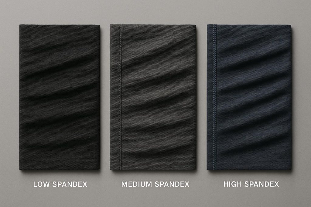How 2–5%, 8–12%, and 15–20%+ spandex blends affect stretch, recovery, GSM, and applications—from casual athleisure to firm compression performance wear.